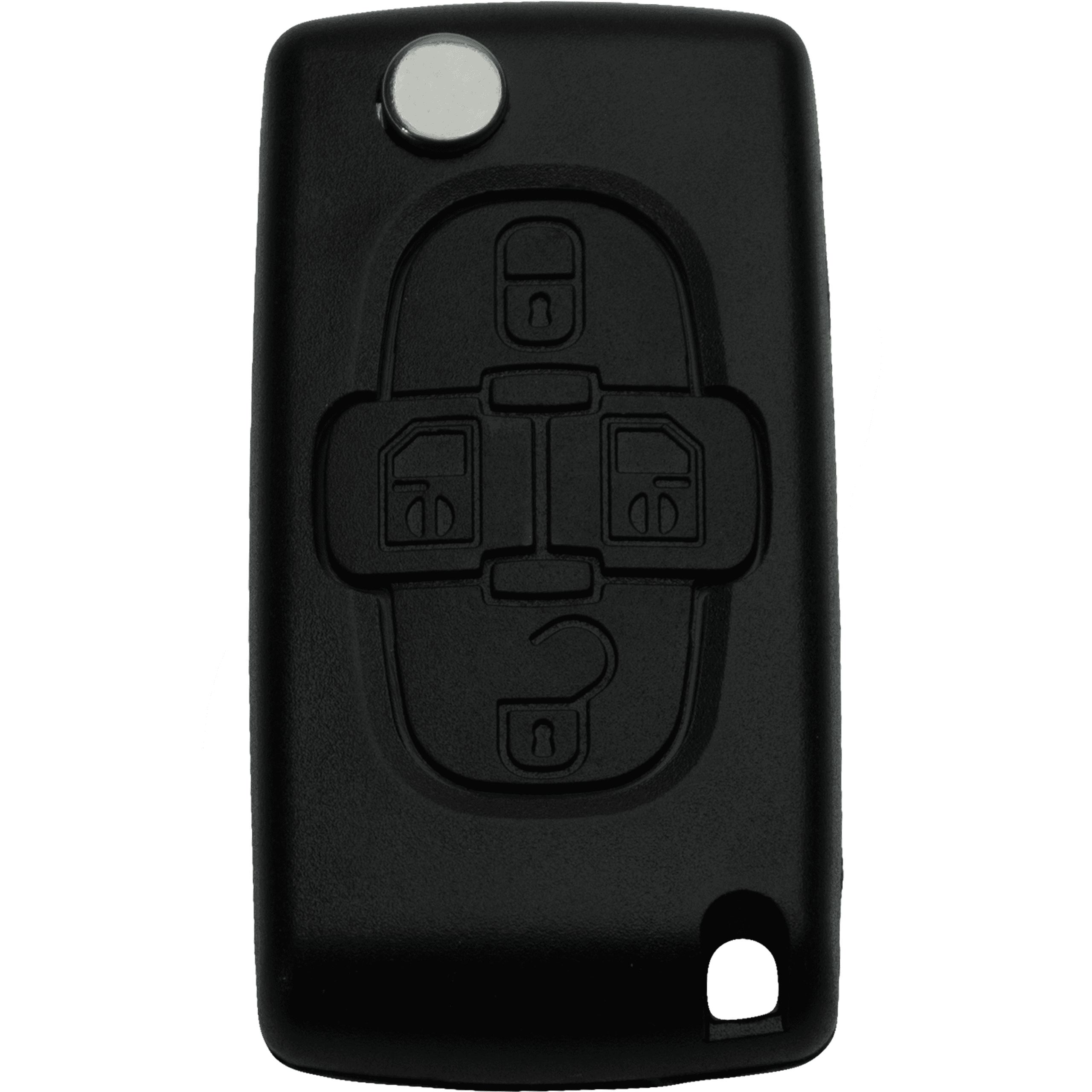 Dorabiamy i programujemy 4-przyciskowy kluczyk scyzoryk PSA z funkcją drzwi przesuwnych w tym wyglądzie. Jeśli kluczyk wygląda tak samo jak na miniaturce, oferta pasuje — pozostałe różnice (układ przycisków/elektronika) dobieramy na miejscu.